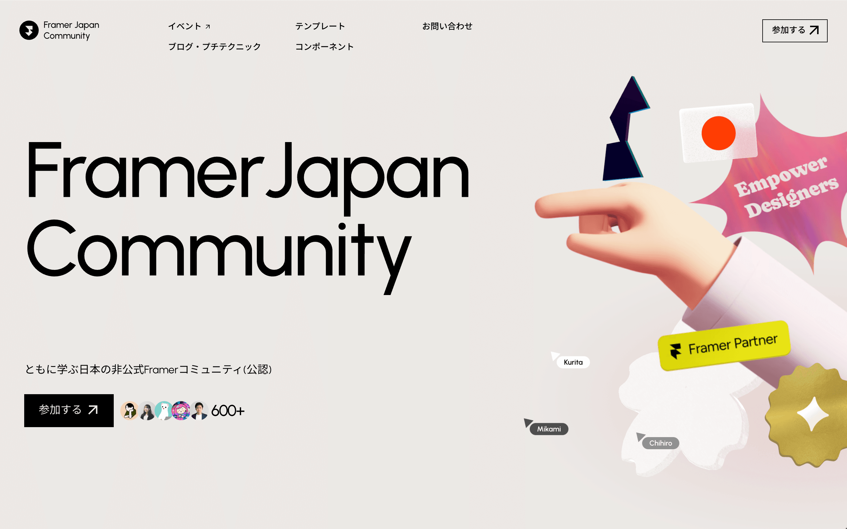 Framerユーザー同士が交流し、ナレッジを共有できるコミュニティを運営しています。最新機能のキャッチアップや、制作上の不明点を解消できる場を提供し、Framerエコシステムの活性化に貢献しています。(2026年4月現在:730名)